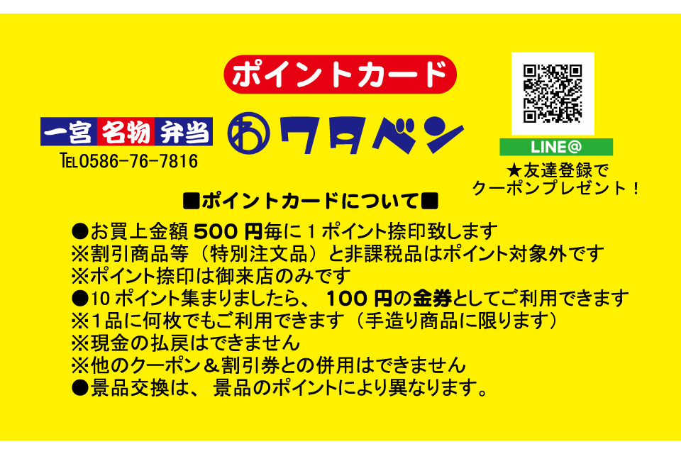 ※ポイント捺印は御来店のみです